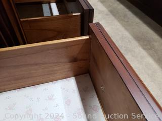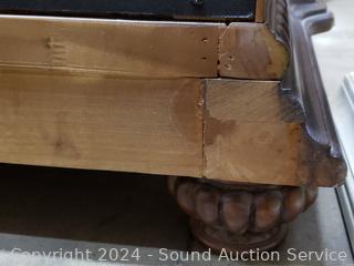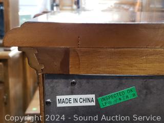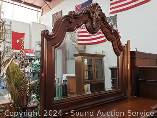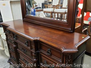 Top drawers are felt lined. Appears to be all wood construction. Don't see any major issues, in excellent condition. 44.25" H x 72" W x 21.5" D with a " x " Mirror. Matches the previous few lots.