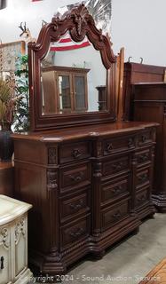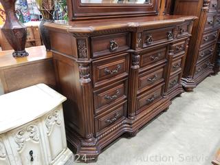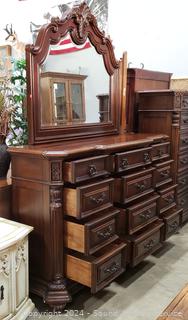 Lot #0010: Ornate Riverside Cherry 12-Drawer Vanity Dresser