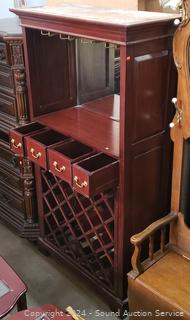 Lot #0007: Solid Wood Dark Finish Wine Rack/Bar