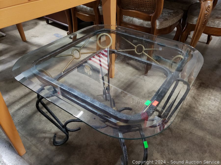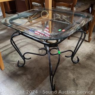 Lot #0212: Steel Base Beveled Glass Top Side Table
