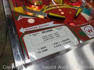 Lot #0001C: Vtg. 1979 Williams Trizone Quarter Pinball Machine - Works!