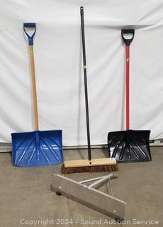Lot #0071: 2 Snow Shovels, 18" Push Broom, 24" Push Pan