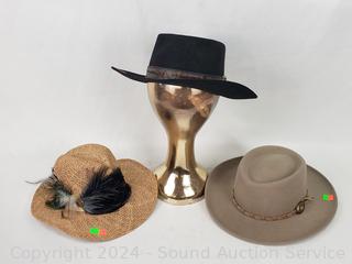 Diane feather adorned, woven. Winchester Felt S:S, Stetson 4X Beaver felt, S:6-7/8. Don't see any major issues.