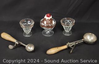 Lot #0129: Assorted Miniature Sundae, Dessert Dishes w/2 Scoops