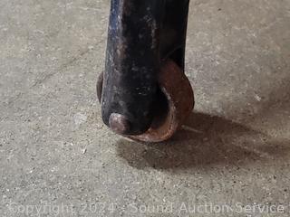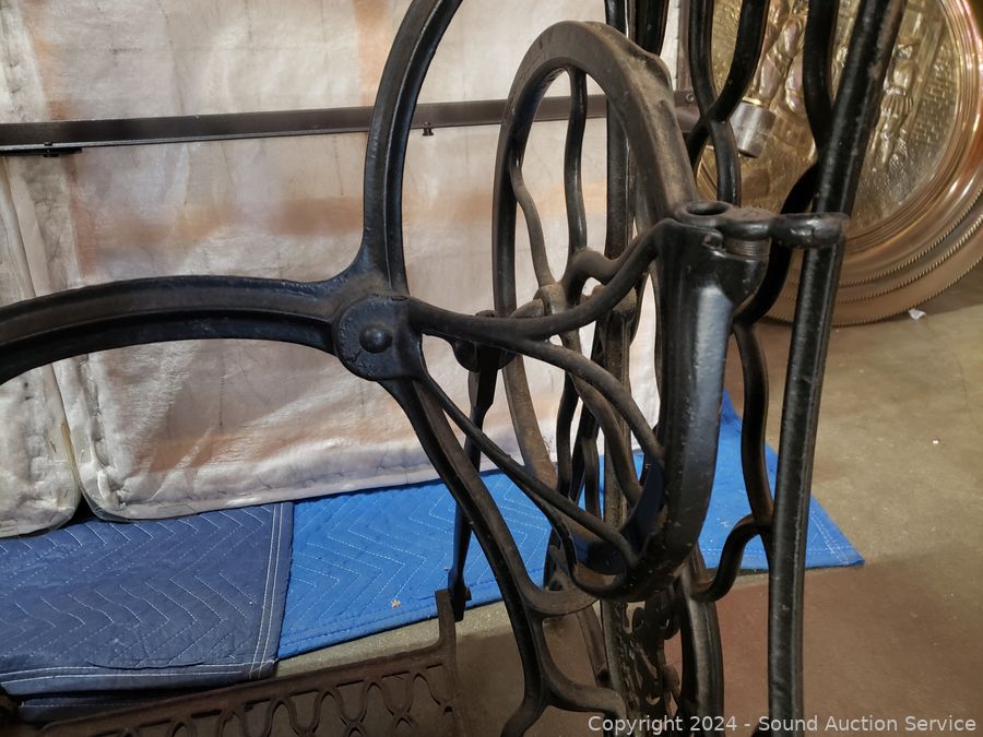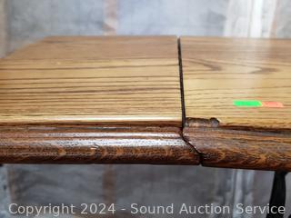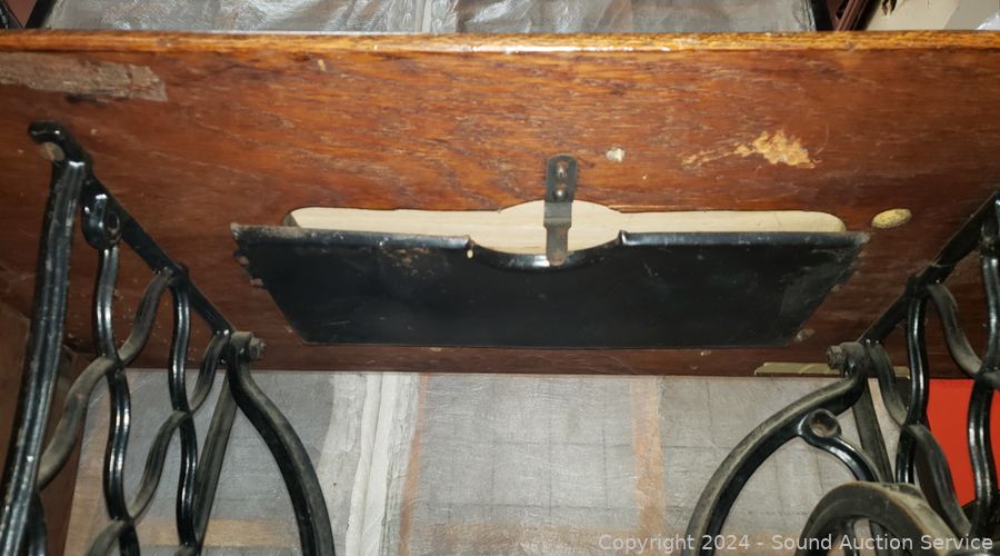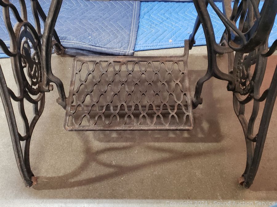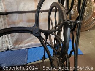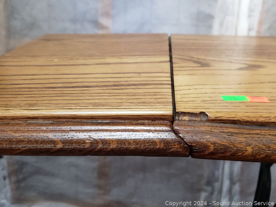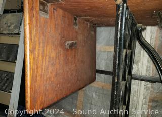 Lot #0076: Vintage Singer Cast Iron Treadle Base Oak Top Table