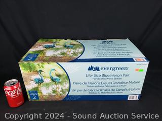 Lot #0248: 2 Pack Evergreen Life-Size Blue Heron Handcrafted Metal Statues