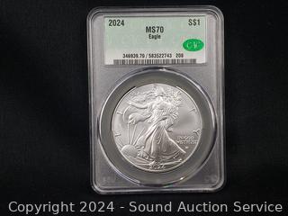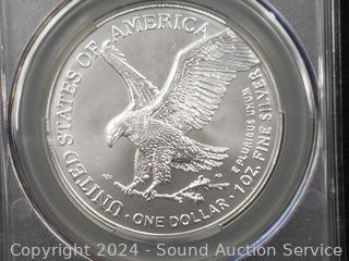 Lot #0117: 2024 Graded MS70 1oz Fine Silver Eagle $1 Coin