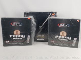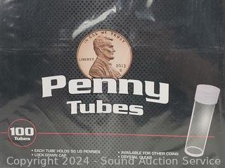 Lot #0103: 3 Sealed 100pk Penny Tubes & 100pk Quarter Tubes