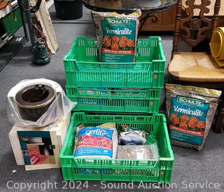 Lot #0068: 4 Green Crates w/Gardening, Soil Treatment