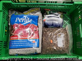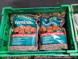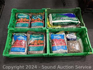 Self-Watering container, water soluble fertilizer, (3) 8 dry Qt. Vermiculite, (2) Perlite. 7" H x 23.5" x 15.5" crates. Refer to photos for more details.