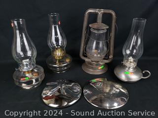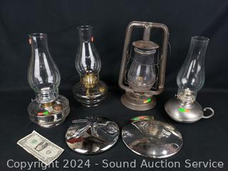 Lot #0204: 4 Oil Lamps & 2 Acme Reflectors?