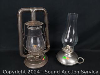 Queen Anne No.2, Lamp Light Farms, Risdon mfg. Oil lamps & Farwell Ozmun St. Paul barn lantern, (2) 8" reflectors.