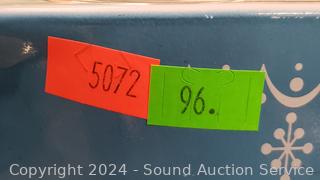 1.5 pint bowl, 1 pint, 1.5 pint, 2" x 9.75" x 9.75", 1qt, 1.5qt dishes with lids. Larger lid doesn't fit dish properly. Light wear from use.