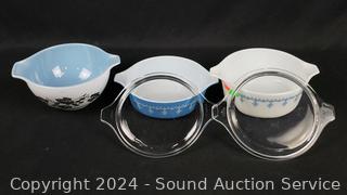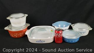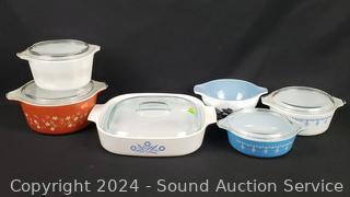 Lot #0096: 6pc Vintage Pyrex & Corning Cookware w/5 Lids