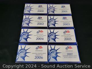Lot #0124: (8) 2000-2007 Sequential Date US Mint Proof Sets