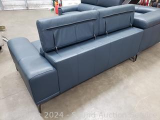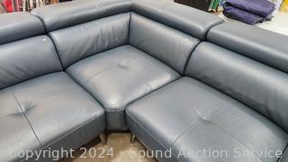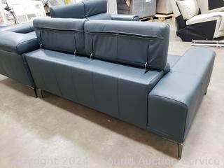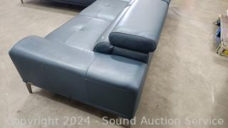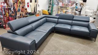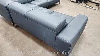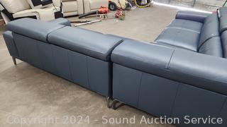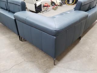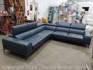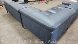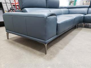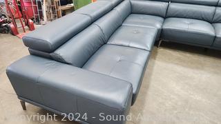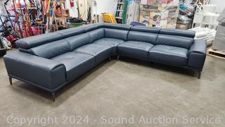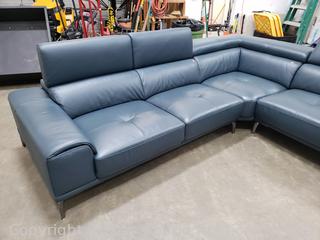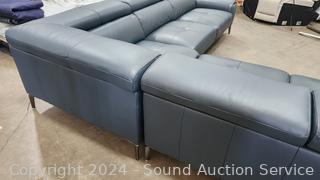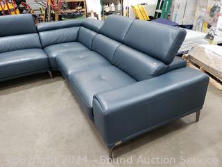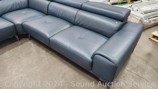 Lot #0005F: Abbyson Quinton Top Grain Blue Leather Sectional (Store Display)