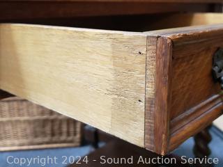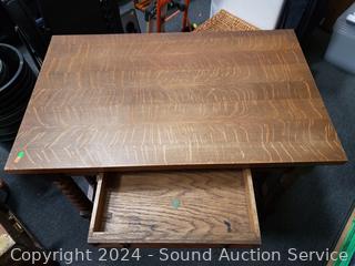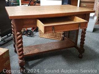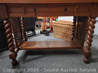 Lot #0010: Antique Hansen Furn. Barley Twist Tiger Oak Desk