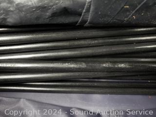 6ft x 9ft x 10ft. Frame has some scuffs, don't see any issues with tent, light works. Complete.