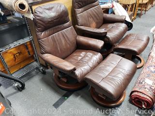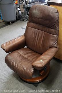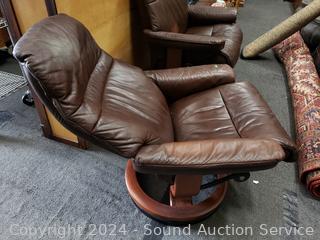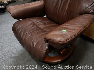 Lot #0012F: Ekornes Norway Stressless Brown Leather Recliner - UPDATED