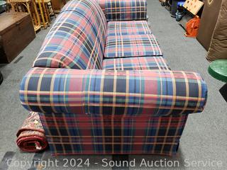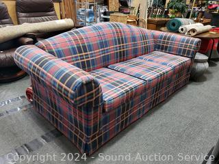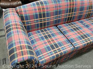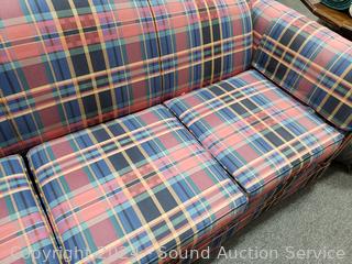 In excellent cosmetic condition, don't see any issues. Comes with arm covers. 33" H x 88" W x 35" D x 18" to seat.
