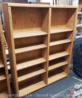 Lot #0017F: Oak 8-Shelf Side by Side Bookcase