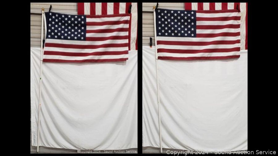 Lot #0295: 2 8ft Flag Poles w/3ft x 5ft 50-Star American Flags