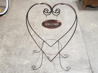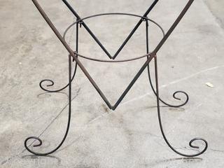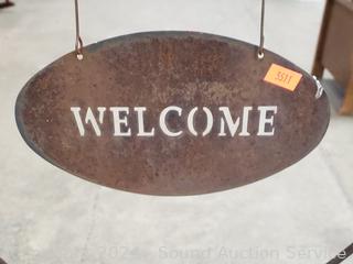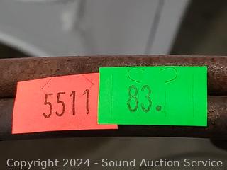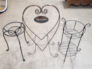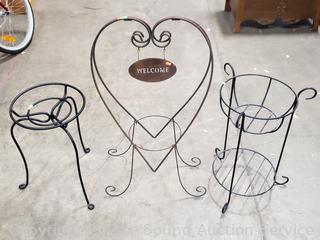 Approx. 20" H x 12.5" Dia., 36" H x 30.5" W x 10", 24" H x 12" Dia. Some weathering wear, rust.