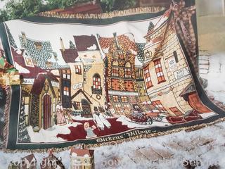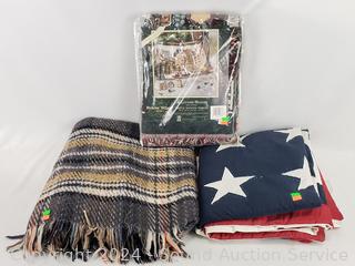 Dickens Village 50" x 68", American Flag Quilted Throw 50" x 60", Macnab Scotland Wool 30" x 54" throw.