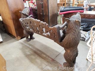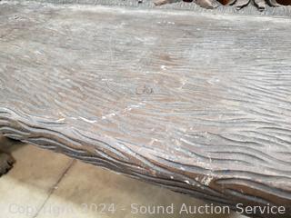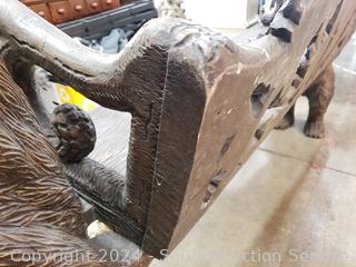 Some weathering wear to finish. 32" H x 62" W x 20" to seat.