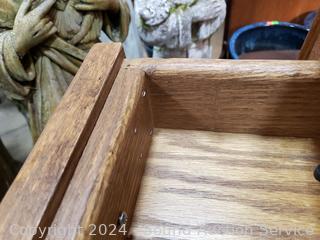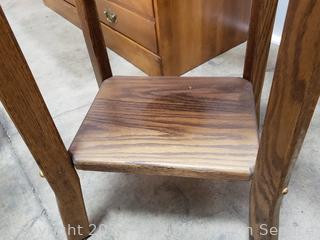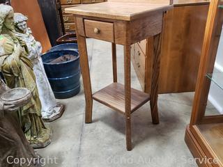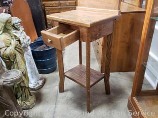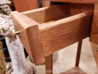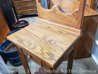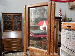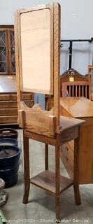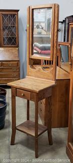 Lot #0060: Oak Single Drawer Mirrored Hall Tree Accent Table