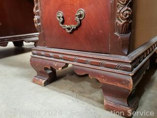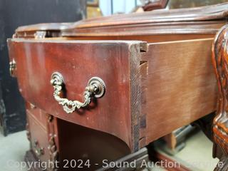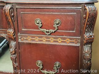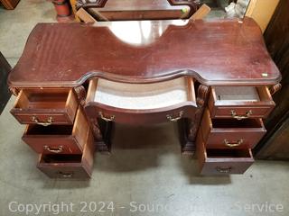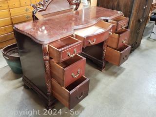 Lot #0015: Vintage Mahogany 7-Drawer Vanity w/Carved Accents