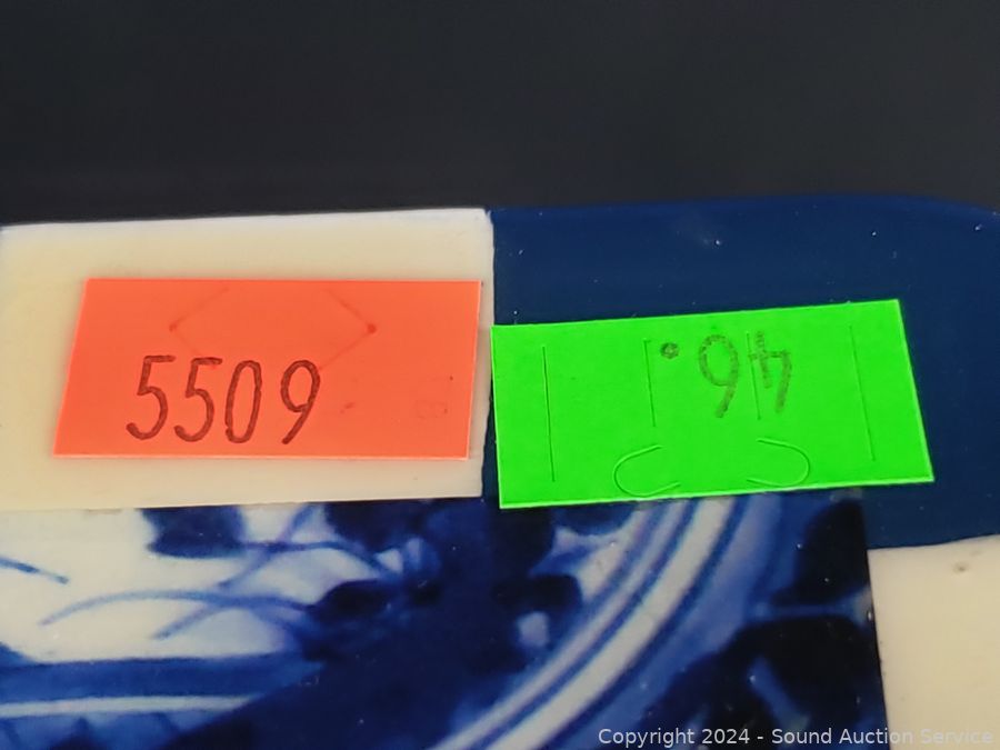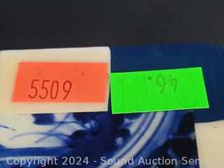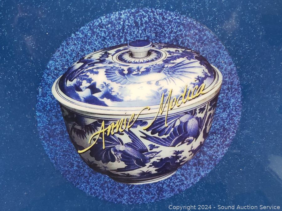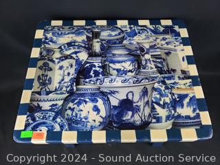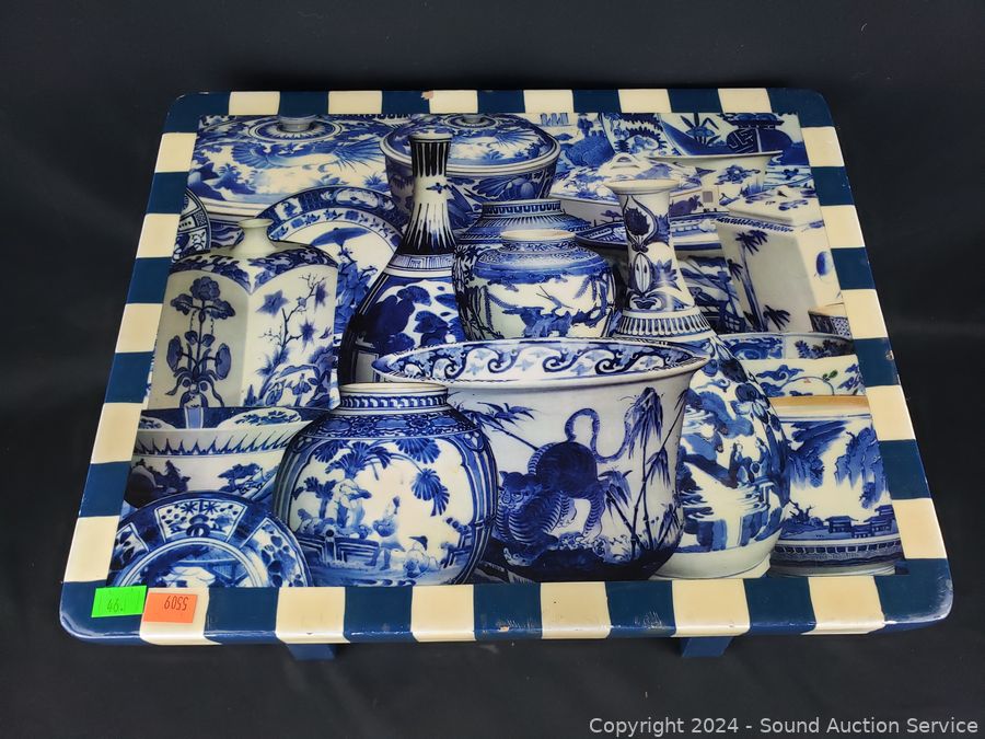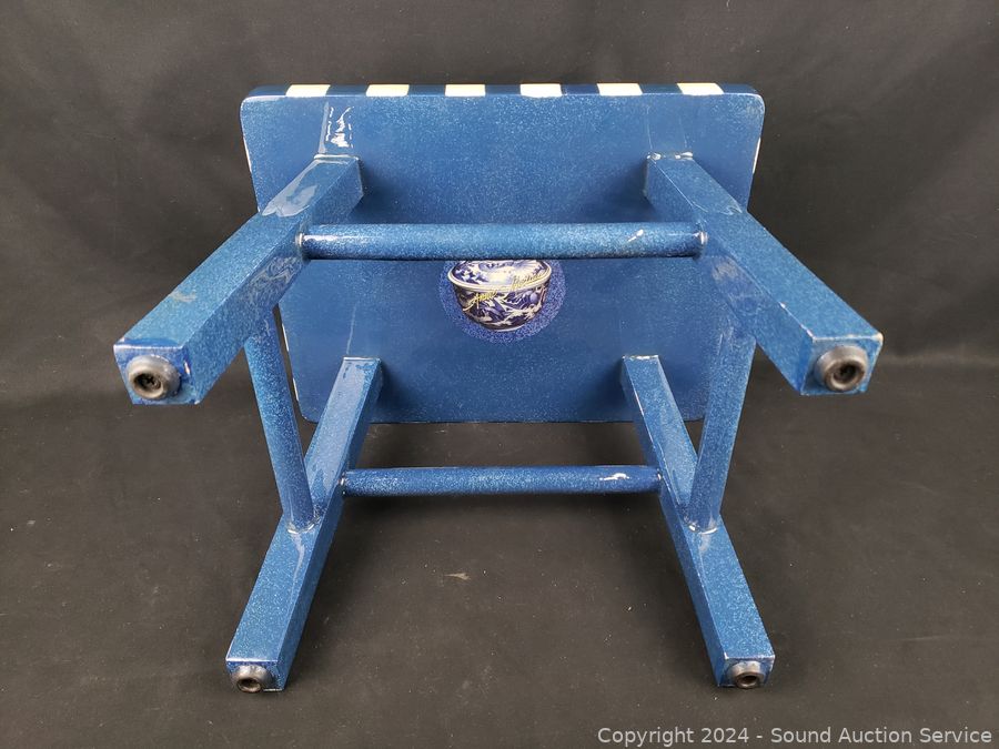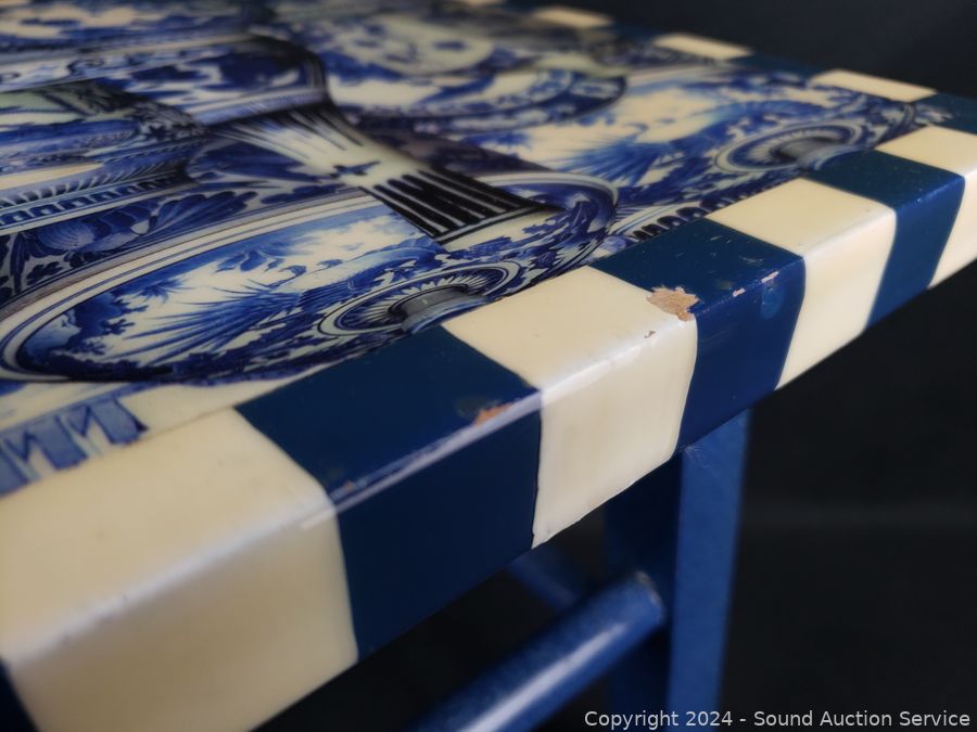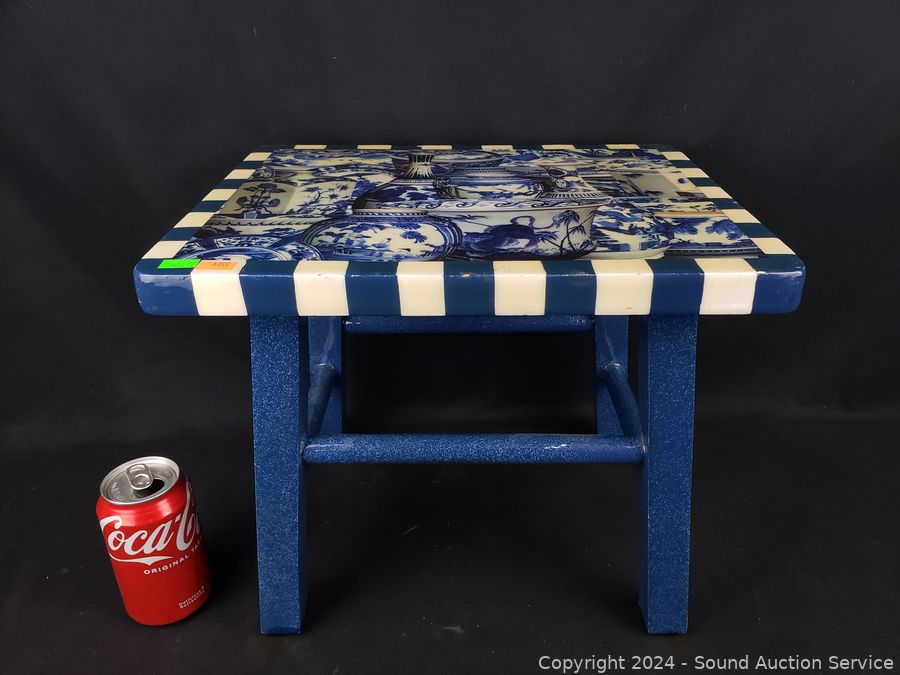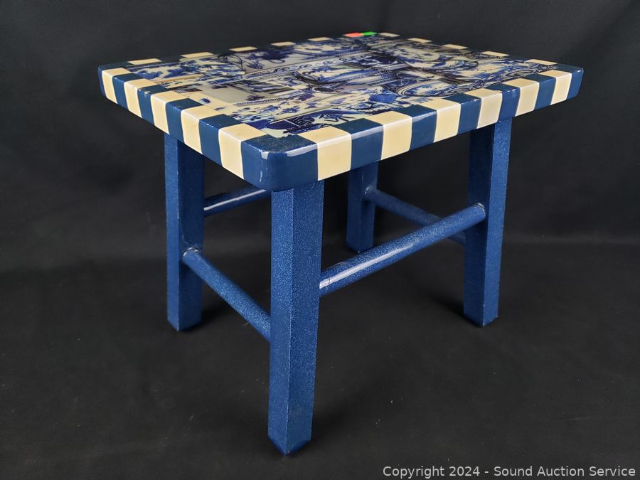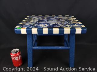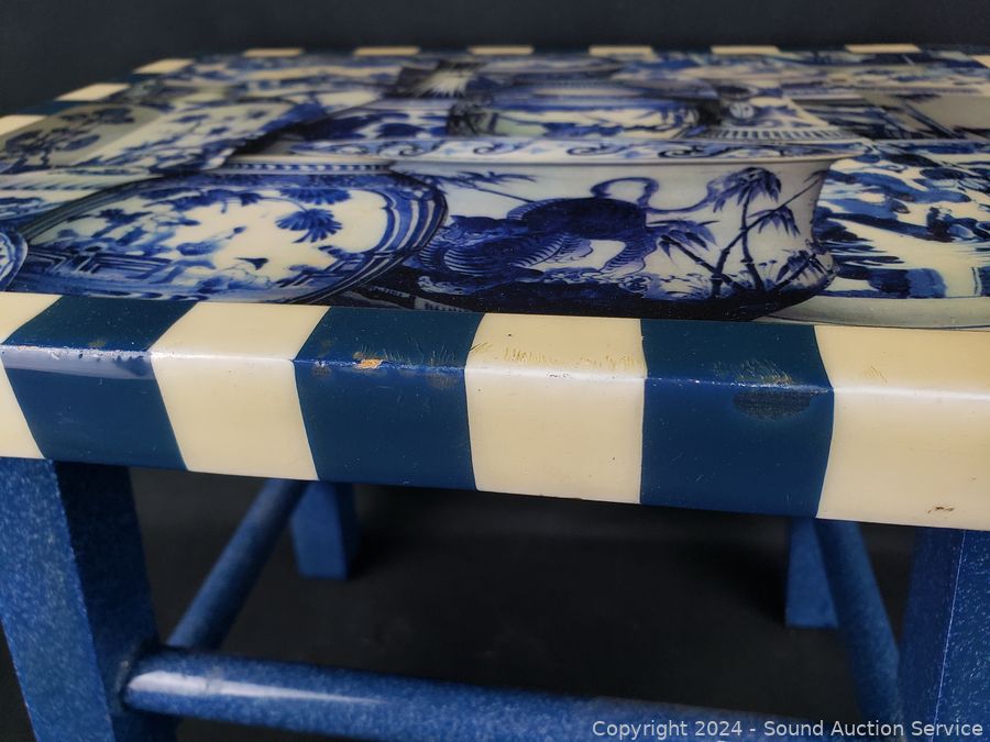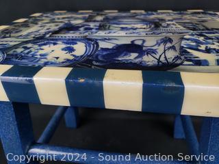 Lot #0046: Annie Modica Delft Blue Checkered Decorative Stool