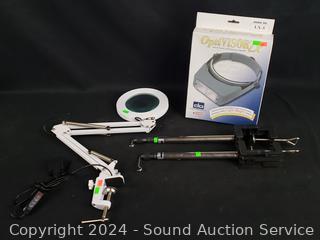 Lot #0153: Articulating Magnifying Tack Lamp, Magnifying Visor & More