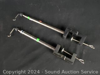 Also comes with 2 table clamp hanging rods, adjustable height. Magnifier has a 20" articulating arm.