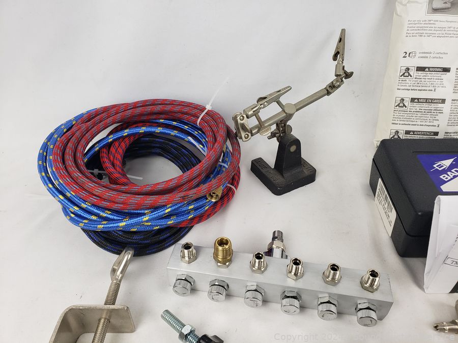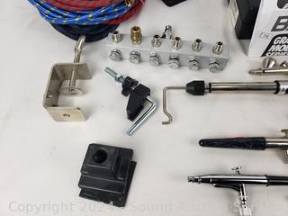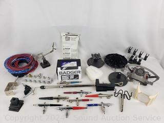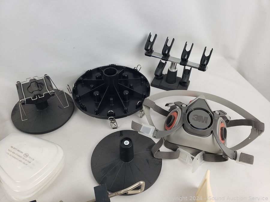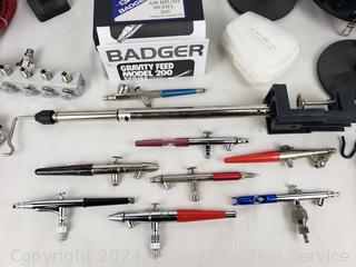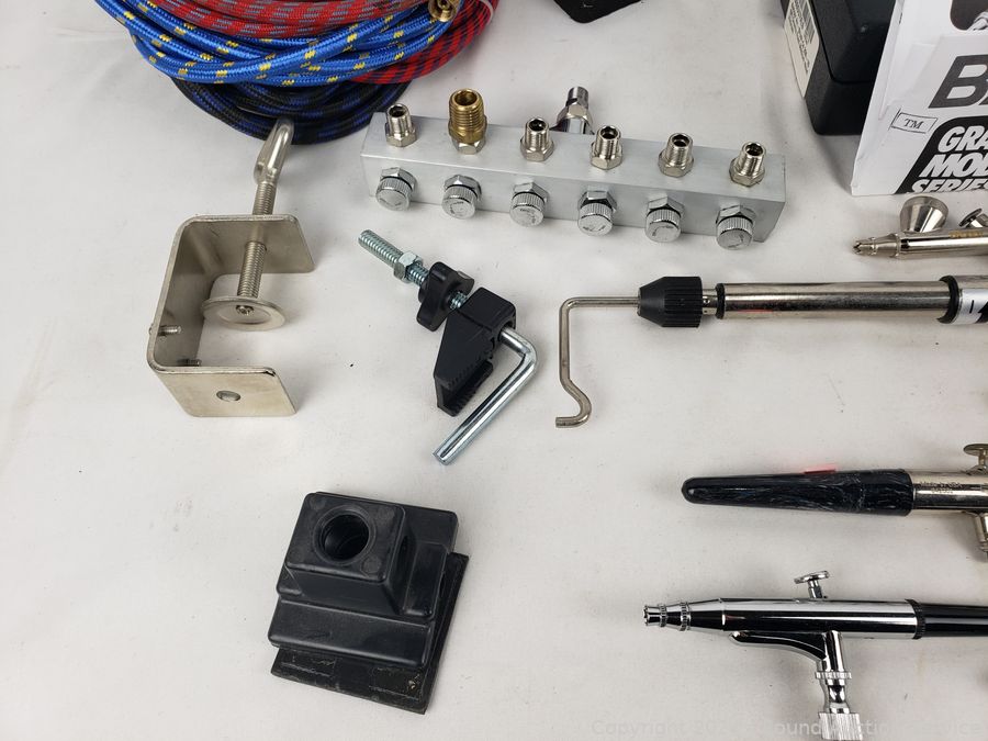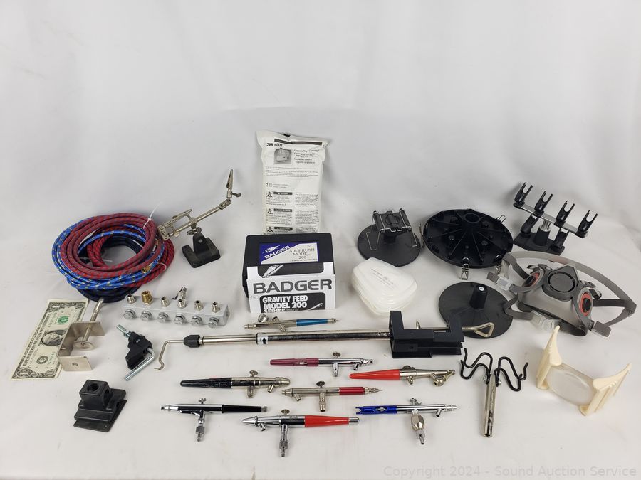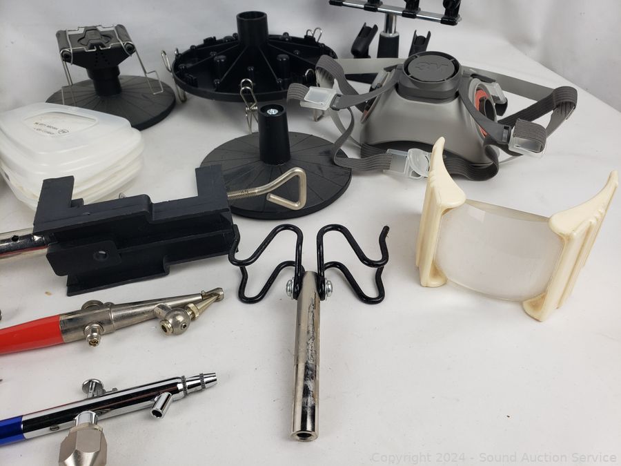 Several air brushes, hoses, mask, no tanks, mask & more. Refer to photos for more details.
