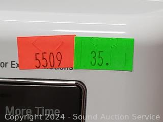 Pulled from the home working. In great cosmetic condition. 56" H x 27" W x 27" D including pedestal drawer. Model DLEX3370W, Serial 701KWWZ4A833.