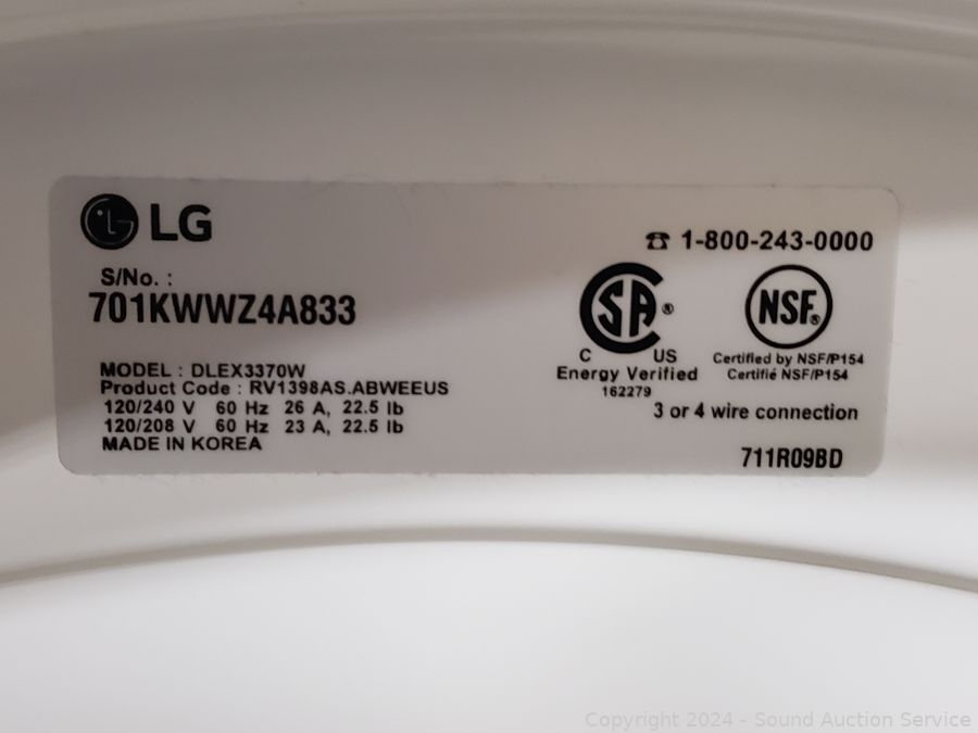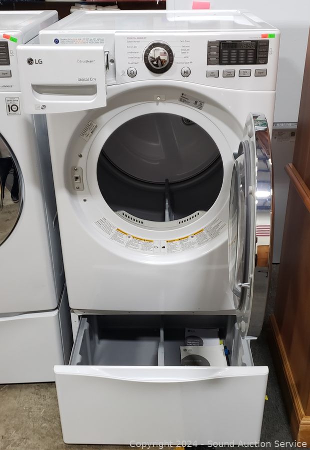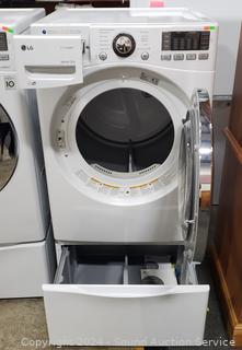 Lot #0035: Elec. LG Steam Sensor Dry Front Load Clothes Dryer w/Pedestal Drawer