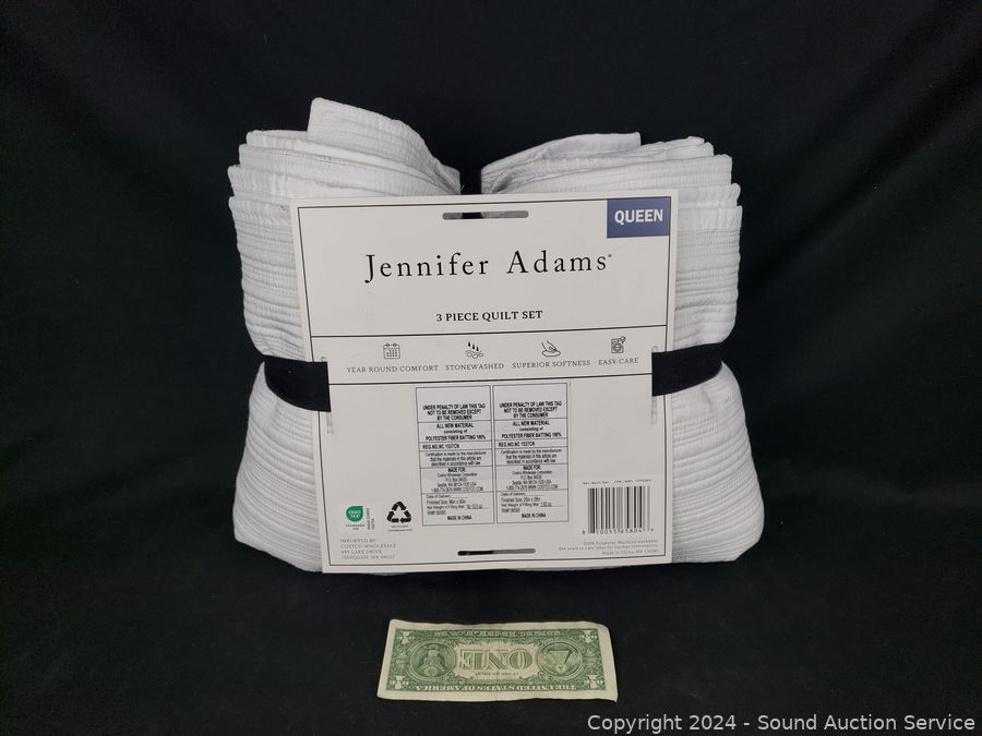 Lot #0225: Jennifer Adams White Queen 3pc Quilt Set
