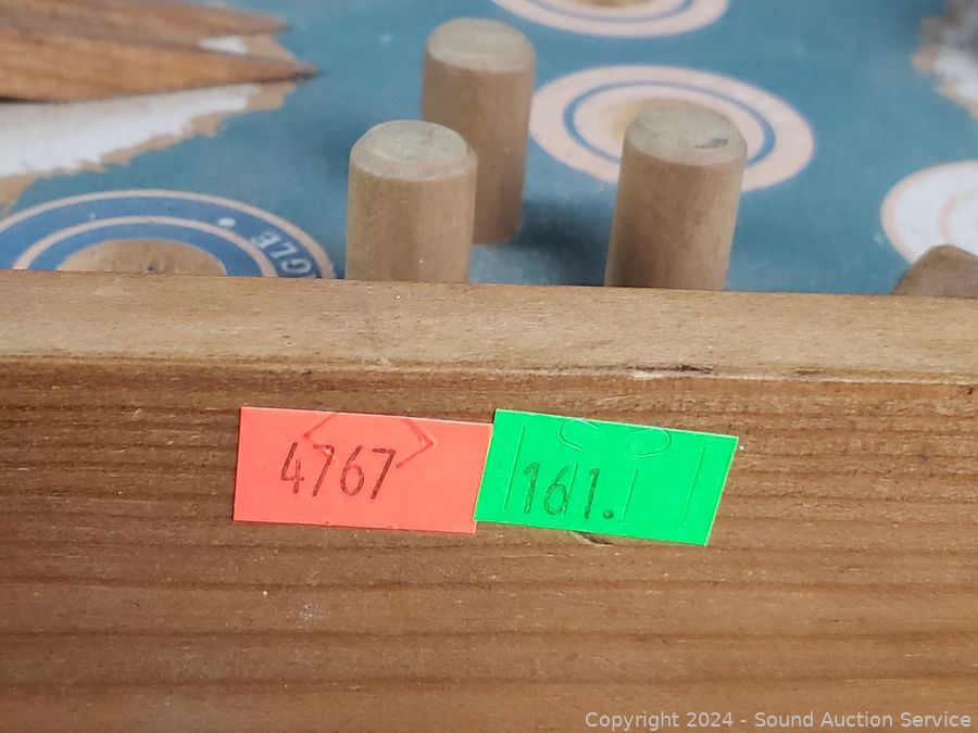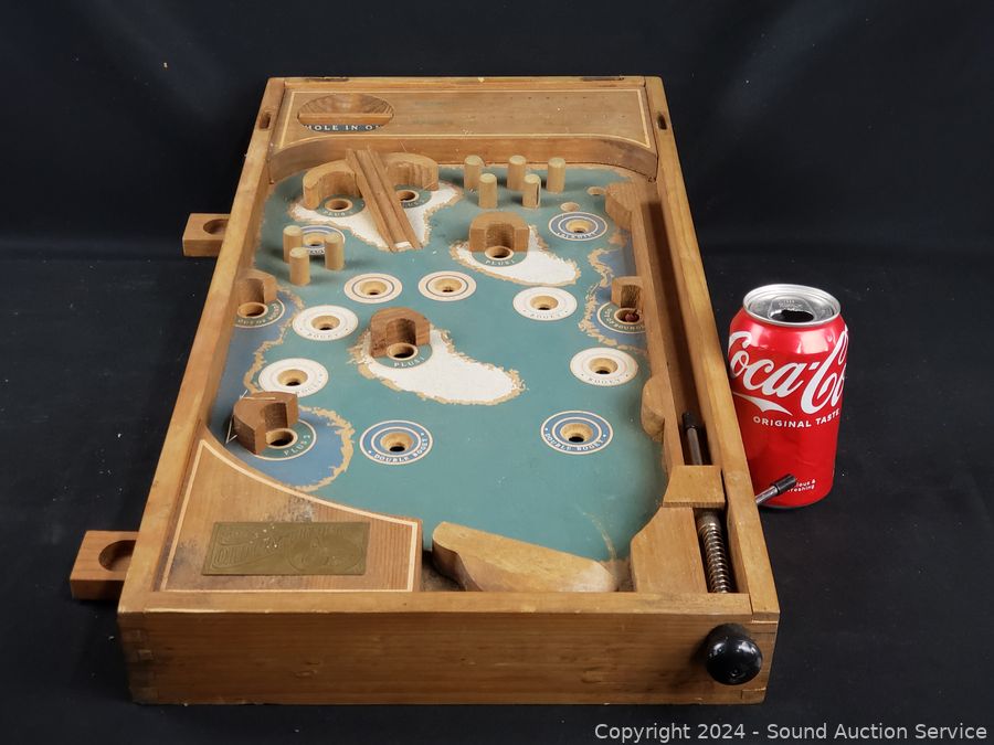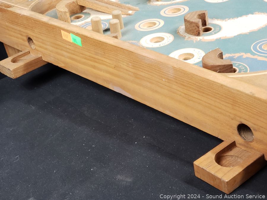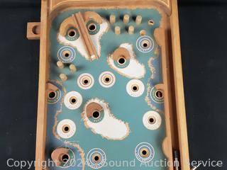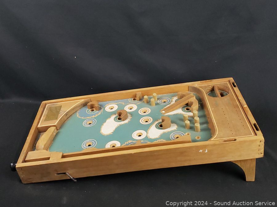 Appears to be functioning as intended. Missing the steel balls. Approx. 6" H x 12" x 24". Signs of wear from age, use.