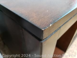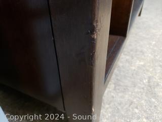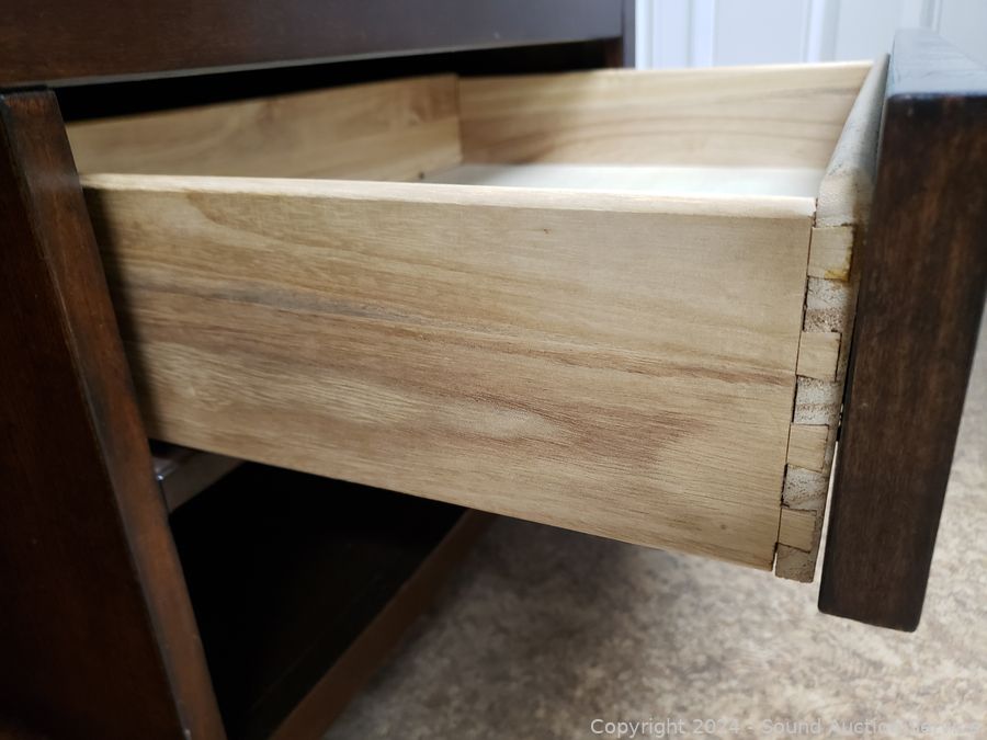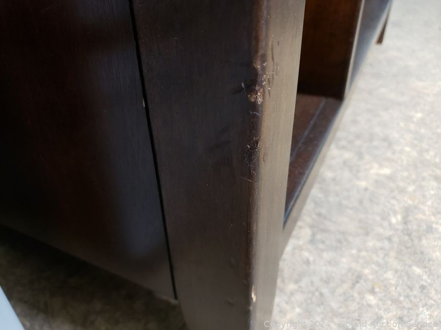 Some damage on front left leg, otherwise in great cosmetic condition. Appear to be all wood construction or wood fronts with dovetail joinery. 18' H x 36" x 20".