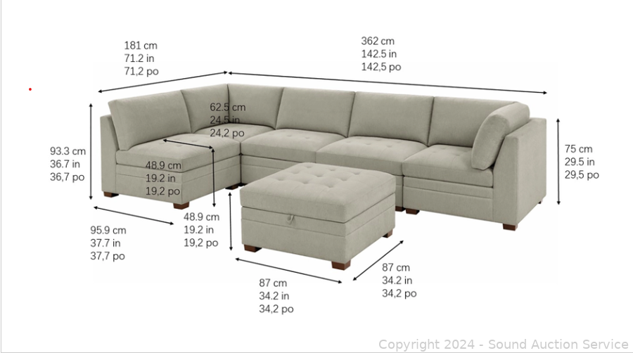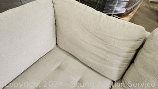 Used, but in overall good condition. One zipper that attaches the cushion is broken. Some minor dirty spots, may clean off with a proper cleaning. See pictures for measurements and condition details. RTV $1,700.00