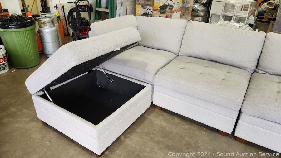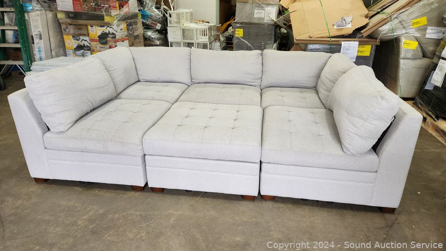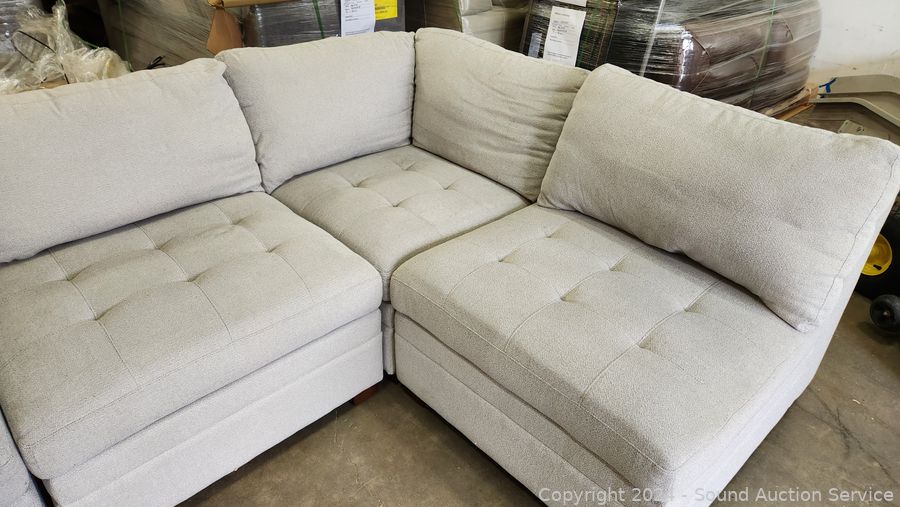 Lot #0002H: Thomasville Tisdale 6pc Beige Sectional w/Ottoman