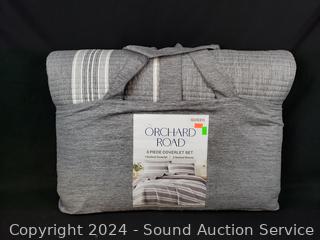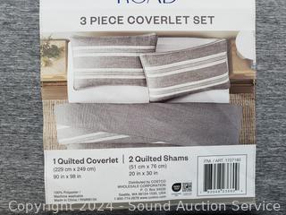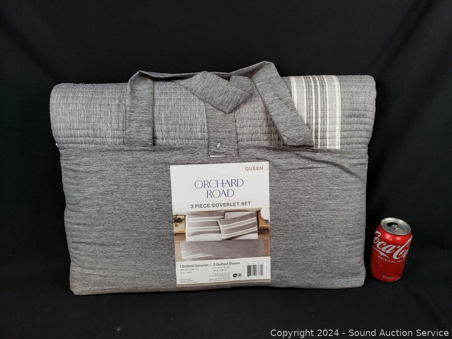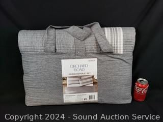 Lot #0278: 3pc Orchard Road Gray Quilted Queen Coverlet Set
