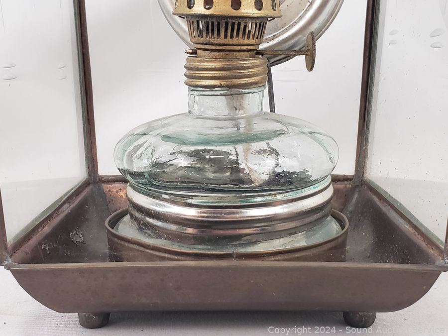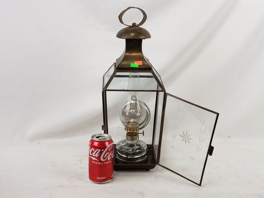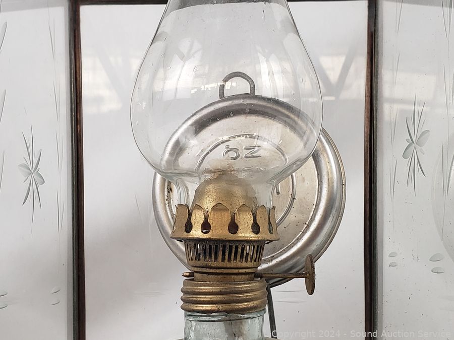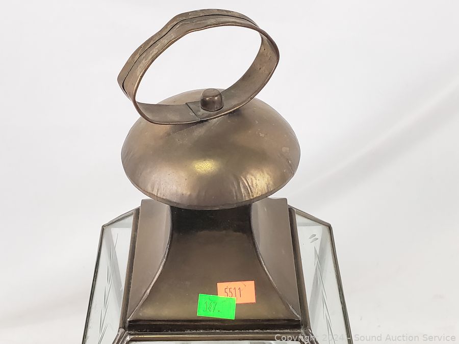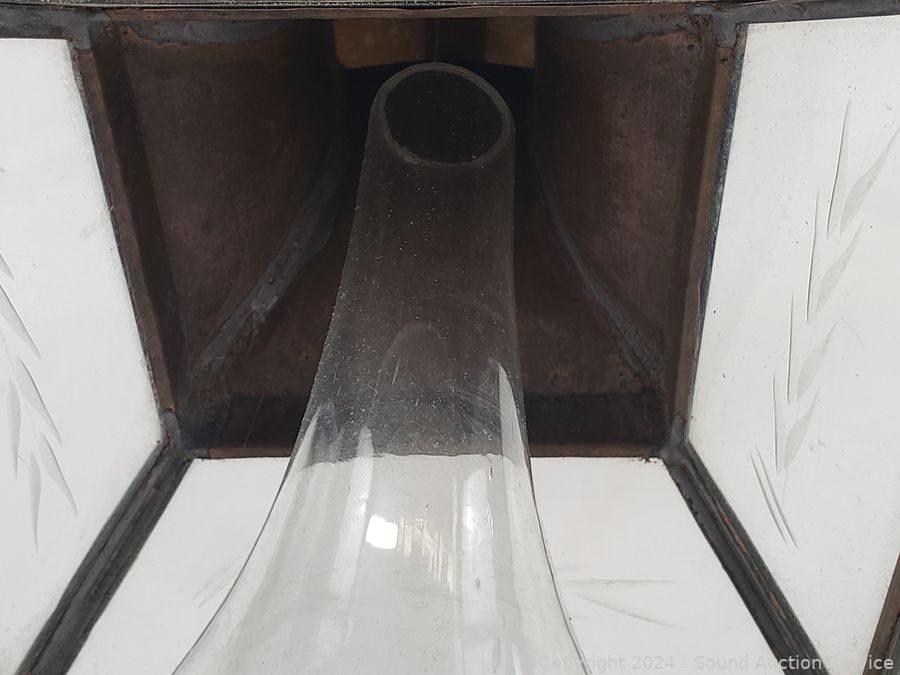 Cut glass accents. 17" H x 6.5" x 6.5" overall.