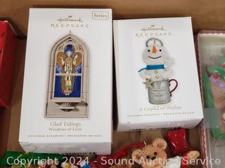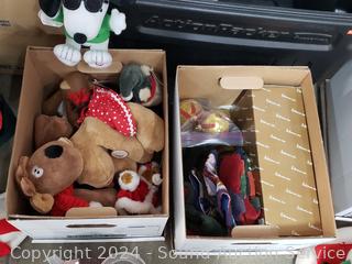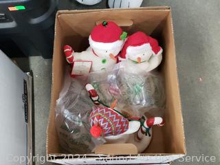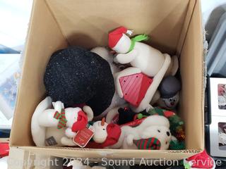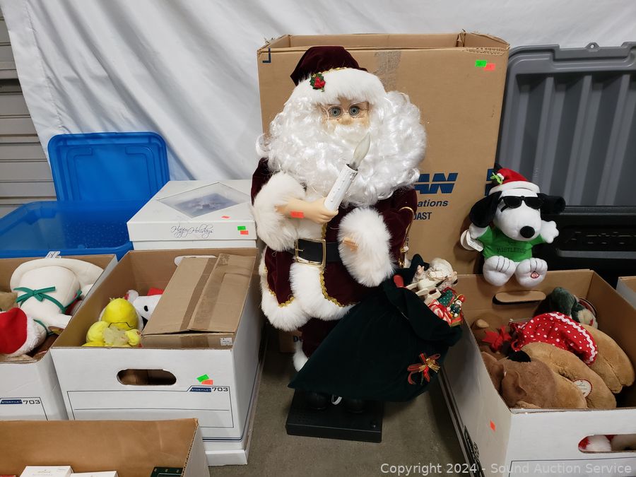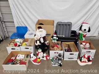 Santa figure, ornaments, stockings, stuffed animals & more. Refer to photos for details.