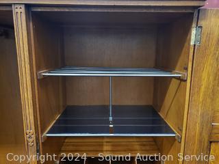 302 Lot including John Deere X324 4-Wheel Steering Lawn Tractor. Antique Armoire, Kidney Desk, Vanity Chest, Modern Hide, Barber chairs, Plaid Soda, Chair Lift, Bose Wave Music System, Sewing/Quilting Supplies, Ironwood Carved Figures, Swarovski Crystal Figures, Danbury Mint Hummel Figure, Gold & Silver Jewelry, Military Vehicles Plastic Scale Model Kits, Trading Cards, Bedding, Kitchen Cookware, Household Goods, Fine China, Utility Shelves, Monitors, TV's, Mirrors & More!!!