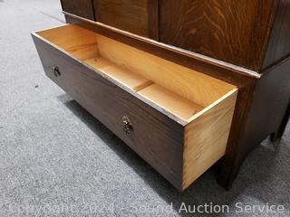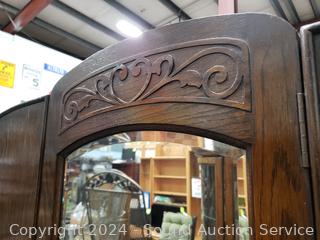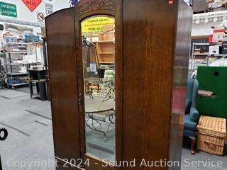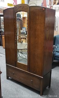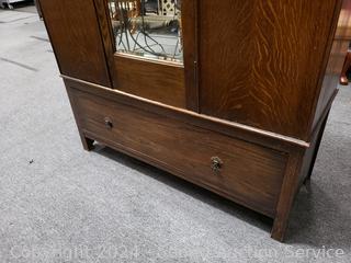 Lot #0002: Antique Quarter Sawn Oak Mirrored Single Drawer Armoire