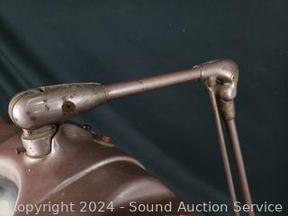 Approx. 22" articulating arm. Various wear to finish, rust spots. Appears to be functioning as intended.