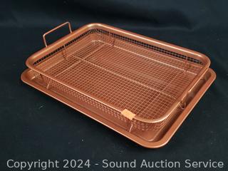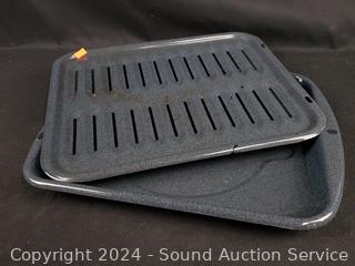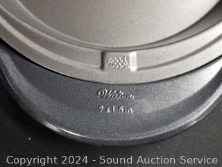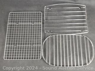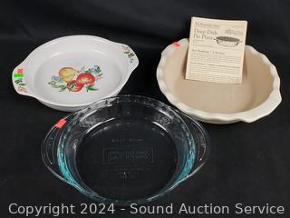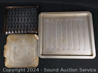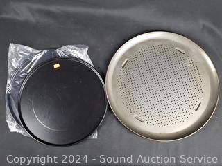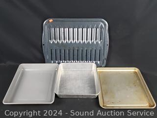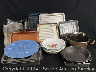 Porcelain deviled egg plate, pie pans, Analon 4.5qt saucepan, various size baking sheets, racks & more. Refer to photos for more details.