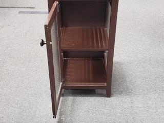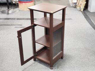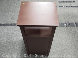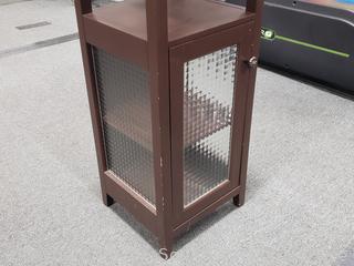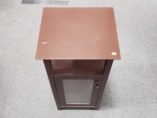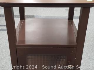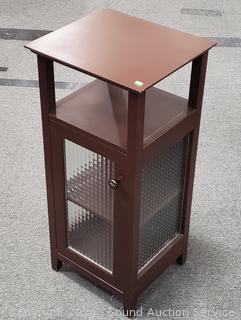 Lot #0019: Brown Finish Glass Door Side Table Cabinet